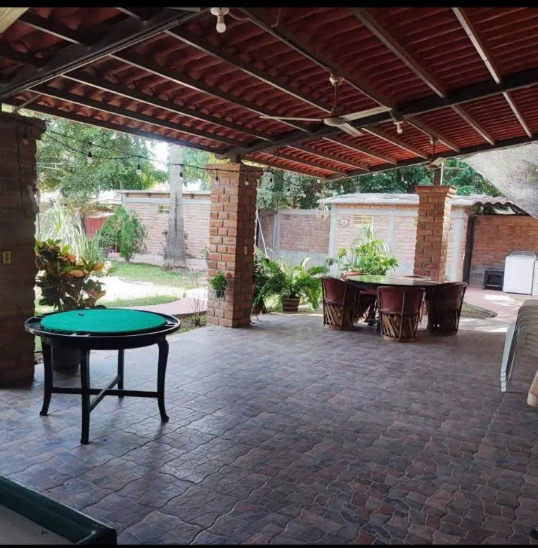 Descripción: Sala-Comedor, cocina muy amplia, cocina integral, dos recámaras, 1 baño completo y 2 medios baños. cochera para 6 autos, patio espacioso y jardín con arboles frutales de todas variedades