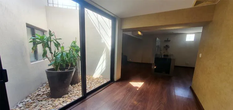 PLANTA BAJA: Sala, Comedor, Cocina Integral, Sala Familiar, Área de Bar, Medio Baño, Jardín Interior, pequeño Patio, Cochera (2) Autos, etc.